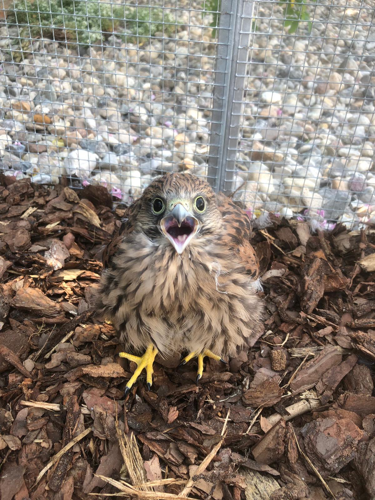 Am Samstag ist ein Turmfalke aus dem Nistkasten an unserer Flugzeughalle gefallen und war zu schwach, um wieder in den Kasten zu kommen. Wir haben den Kleinen mit Wasser versorgt und am Sonntag den Tierschutz informiert der auch kurzfristig kam und den kleinen Pieper abgeholt hat. Hier ein kleiner Schnappschuss.